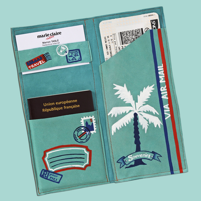Un petit mot pour vous dire que j’adore cette pochette en cuir : un très beau turquoise d’actualité avec l’été qui arrive…