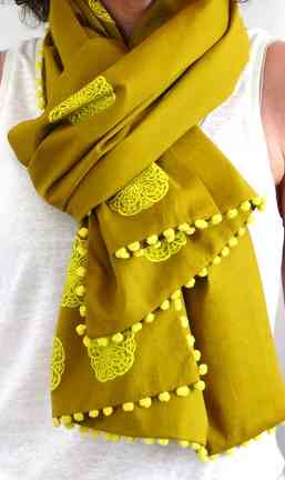 J’aime la couleur ensoleillée, les pompons et surtout les motifs dentelle réalisé au tampon