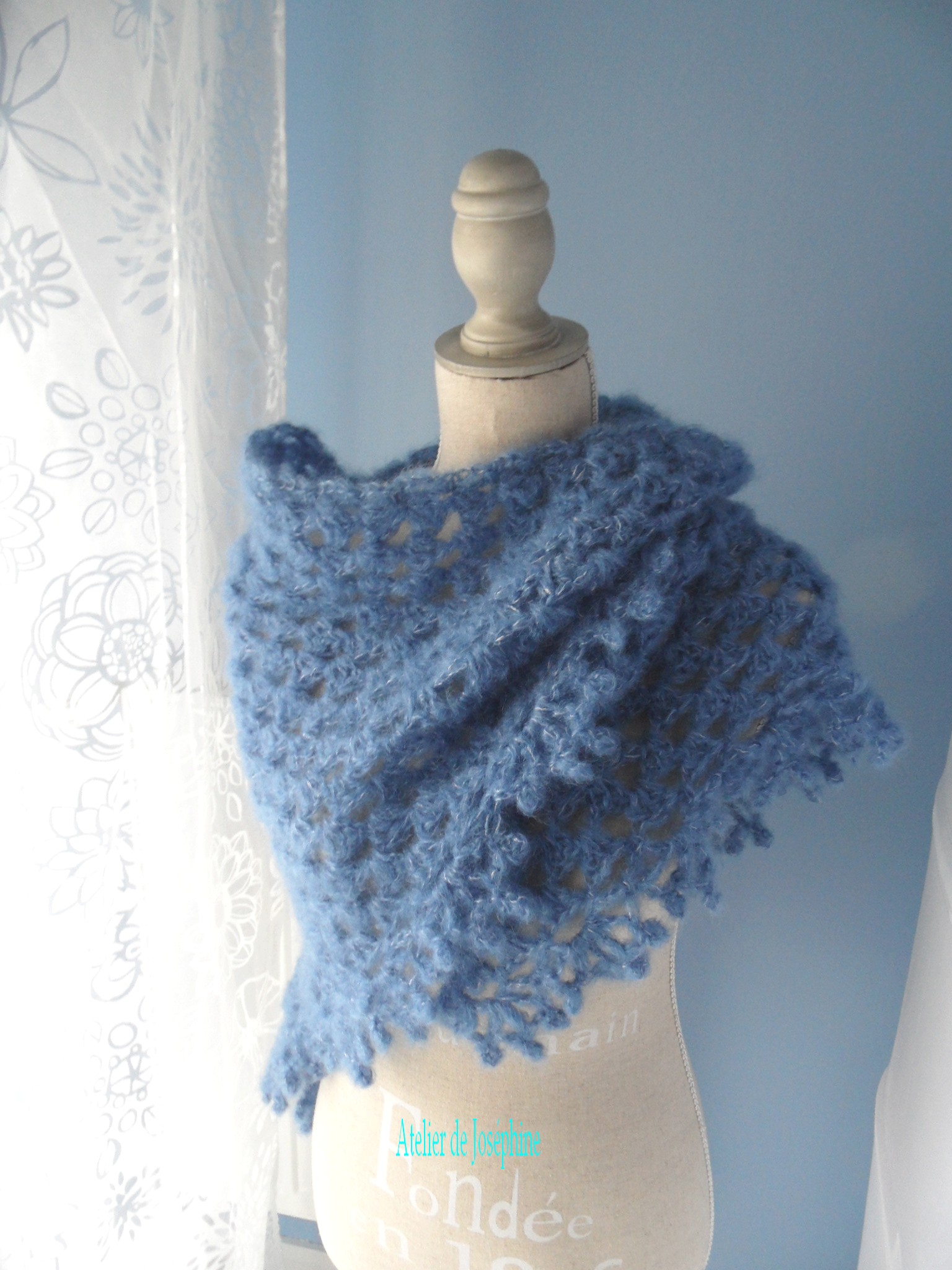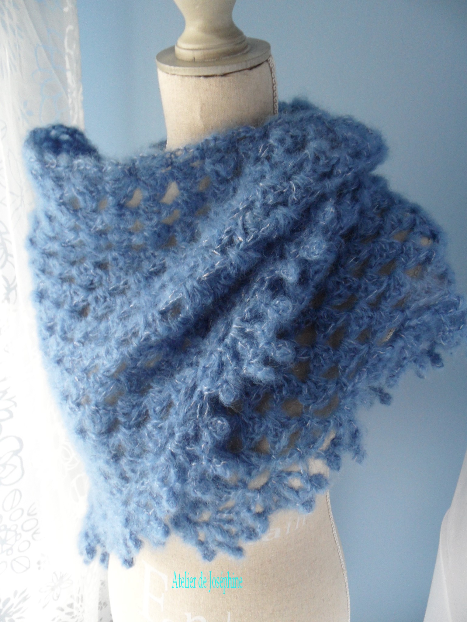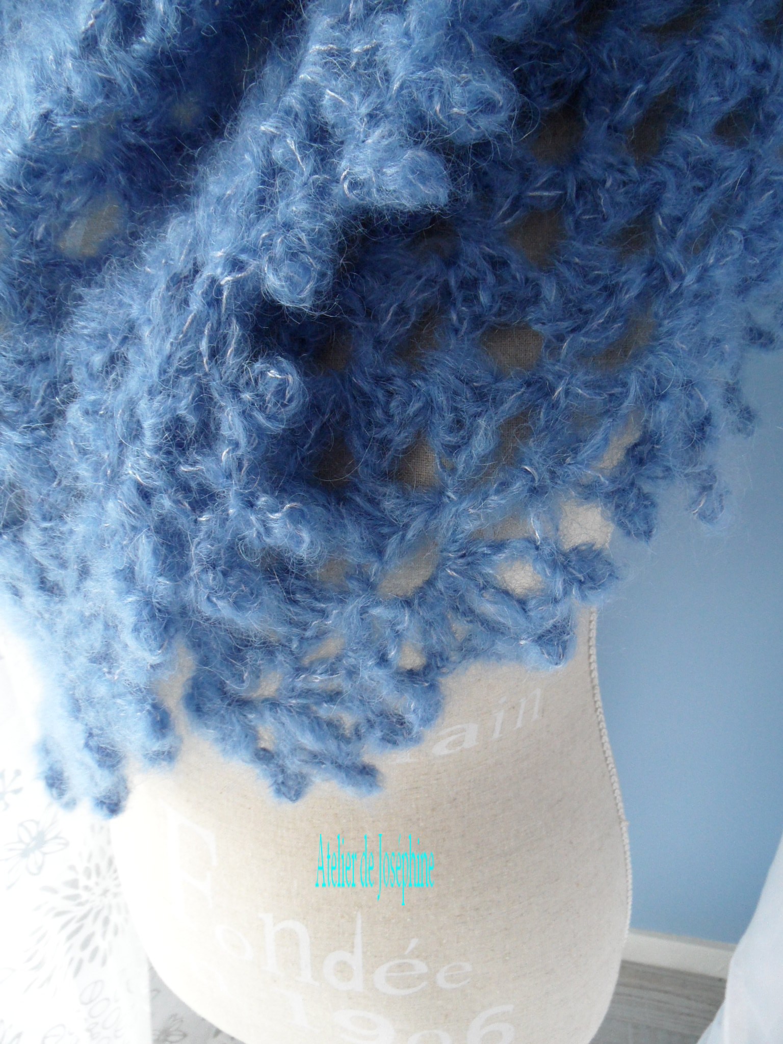 Je reviens à mon cher Châle Serena ici interprété en Shangaï de chez Fonty, en mohair et soie, divine matière