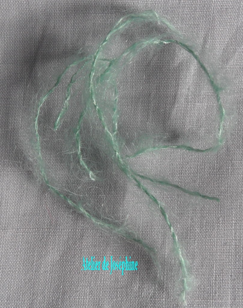 J’ai eu terriblement envie de vous présenter aujourd’hui cette laine assez étonnante : en mohair et soie (70% mohair et 30% soie) qualité Shangaï de chez FONTY.