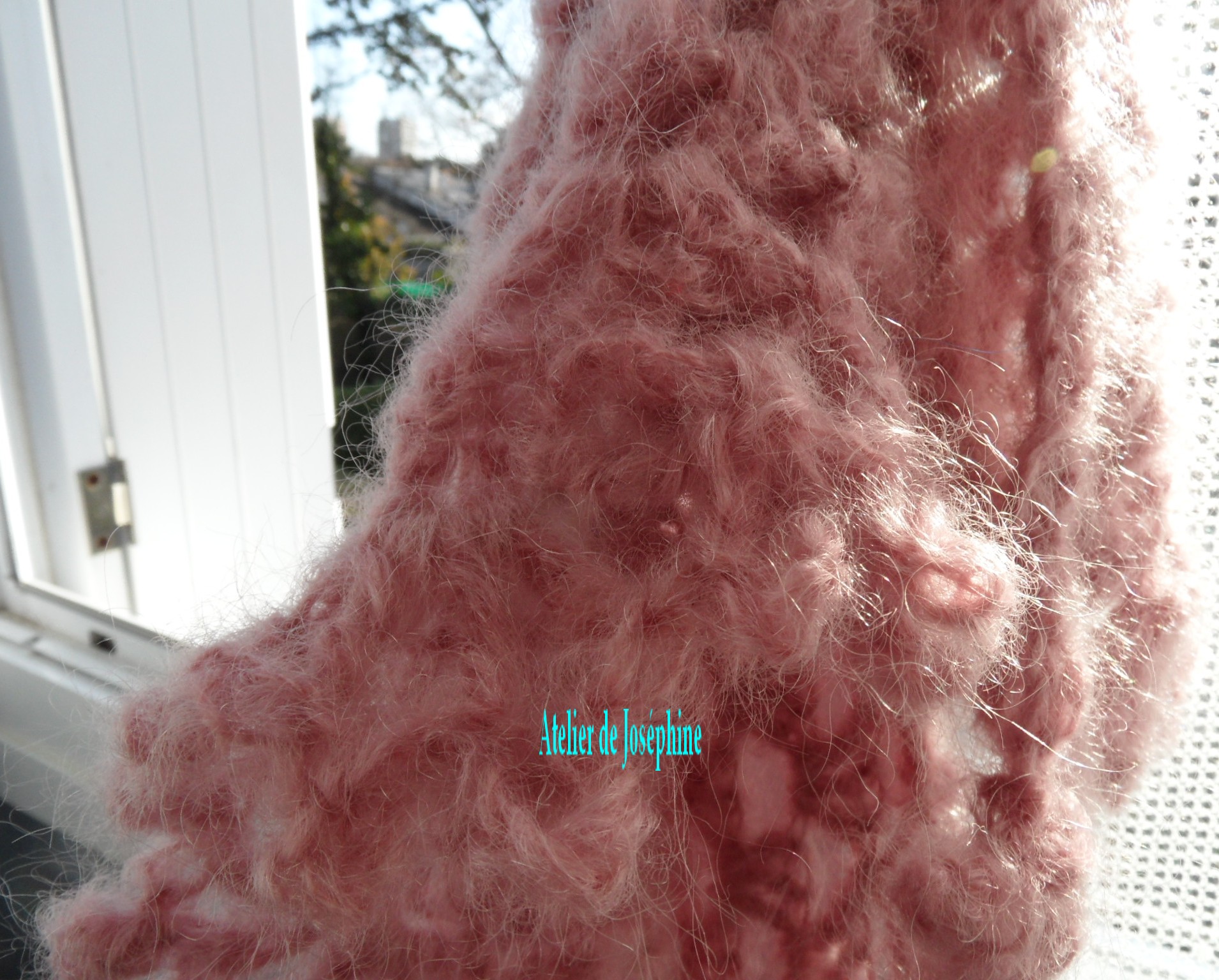 Une matière de rêve tellement douce : qualité Ombelle (70% KidMohair et 25% Laine), on ne s’en lasse pas…Une envie de s’y lover et de ne plus s’en séparer…
