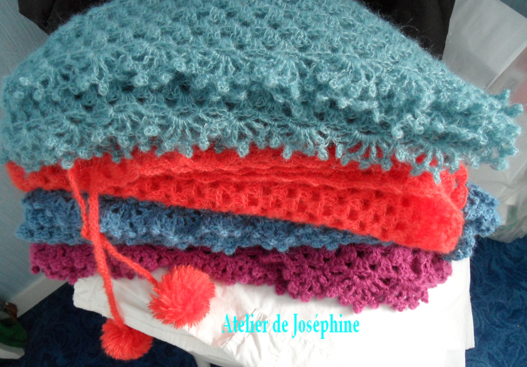 J’ai la joie de vous présenter ici les châles que j’ai crochetés cet été… Ils ont fait des heureuses !