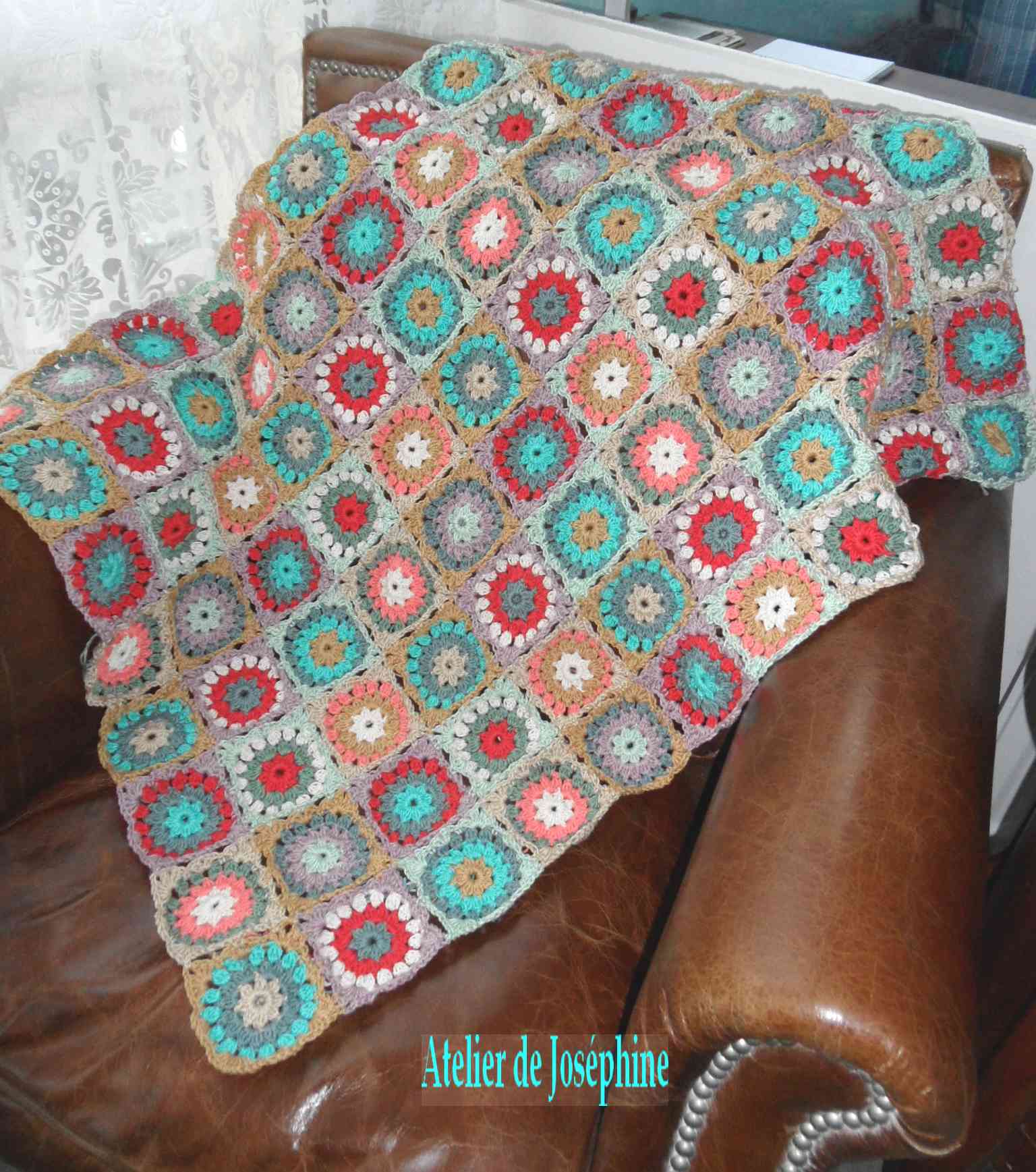 C’est avec joie que je vous présente aujourd’hui mon plaid Soleil inspiré de celui de Cécile dans son livre Granny folies